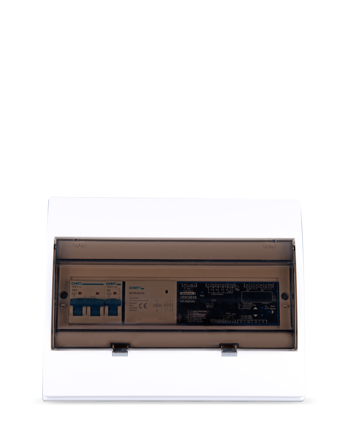 Anti-islanding kutusu, bir Ziehl anti-islanding rölesi (model UFR1001E veya model SPI1021), gerekli devre kesiciler ve 63A kontaktörden oluşan eksiksiz bir kablolu ve kolay monte edilmiş anti-ada aygıtıdır. Ziehl rölesinin özellikleri için bkz. Http://www.ziehl.de.