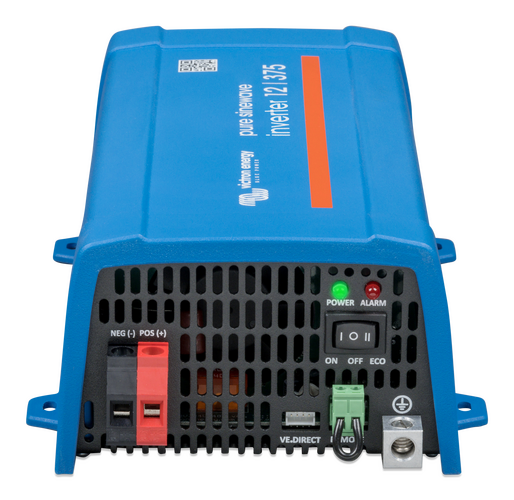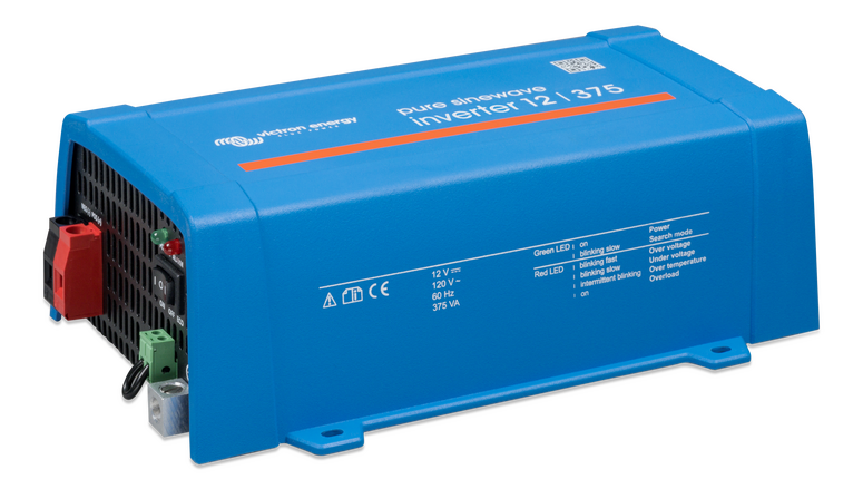 Phoenix 12/375 VE.Direct NEMA 5-15R İnverterler, 12 V, 24 V veya 48 V DC değerindeki 'serbest' veya 'otomotiv' akülerini kullanarak 230 V/120 V AC gerektiren ev içi donanımlara güç sağlamanıza olanak verir.