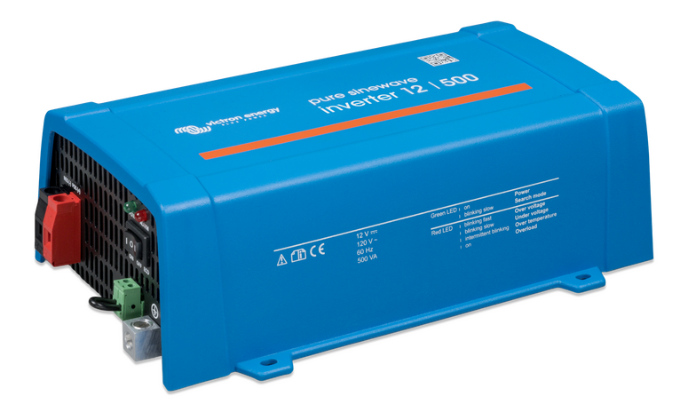 Phoenix 12/500 VE.Direct NEMA GFCI (UL 458) İnverterler, 12 V, 24 V veya 48 V DC değerindeki 'serbest' veya 'otomotiv' akülerini kullanarak 230 V/120 V AC gerektiren ev içi donanımlara güç sağlamanıza olanak verir.