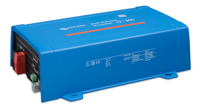Phoenix 12/800 VE.Direct NEMA GFCI (UL 458) İnverterler, 12 V, 24 V veya 48 V DC değerindeki 'serbest' veya 'otomotiv' akülerini kullanarak 230 V/120 V AC gerektiren ev içi donanımlara güç sağlamanıza olanak verir.