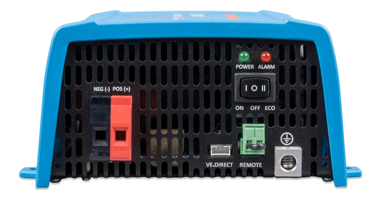 Phoenix 24/500 VE.Direct NEMA GFCI (UL 458) İnverterler, 12 V, 24 V veya 48 V DC değerindeki 'serbest' veya 'otomotiv' akülerini kullanarak 230 V/120 V AC gerektiren ev içi donanımlara güç sağlamanıza olanak verir.