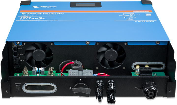 Victron Energy Inverter RS 48/6000 230V Smart modeli , güçlü bir 48VDC, 6kVA 230VAC invertör ile yüksek gerilim, 80-450VDC, 4kW MPPT solar şarj cihazının birleşimidir. Modern tasarımı ve yüksek frekans teknolojisi sayesinde invertör yalnızca 11 kg ağırlığındadır ve mükemmel bir verime, düşük bekleme gücüne ve çok sessiz çalışmaya sahiptir.