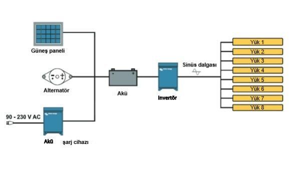 Otomatik bir aktarma anahtarı gerekiyorsa MultiPlus invertör/şarj cihazı kullanmanızı öneririz. Anahtar bu ürünlere dahildir ve MultiPlus'ın şarj cihazı fonksiyonu devre dışı bırakılabilir. MultiPlus, son derece kısa geçiş süreleri (20 milisaniyeden kısa süre) sunduğu için bilgisayarlarınız ve diğer elektronik ekipmanlarınız çalışmaya devam eder.