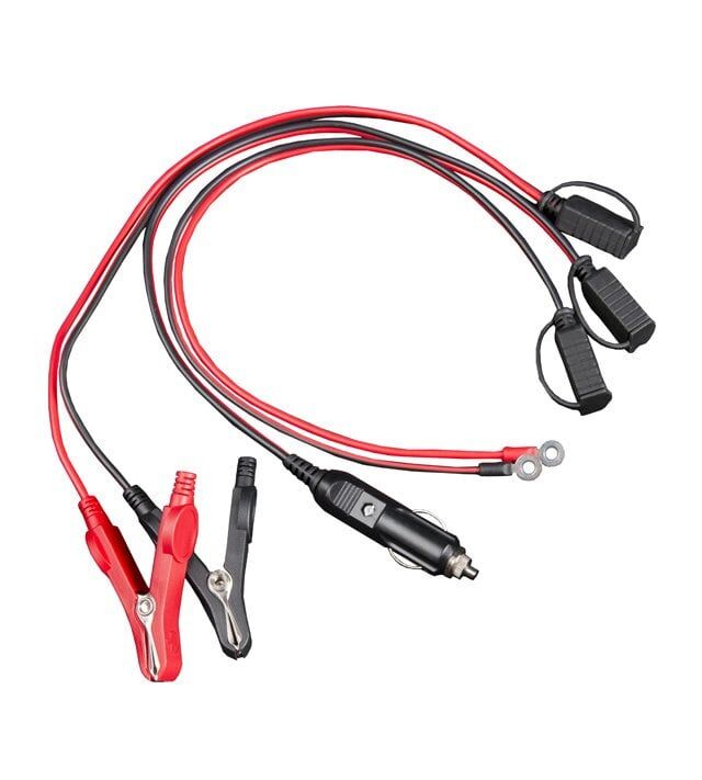 Kullanım amacına göre, şarj cihazına kelepçe, delik halka veya çakmak soketi (hepsi pakete dahildir) takılabilir.